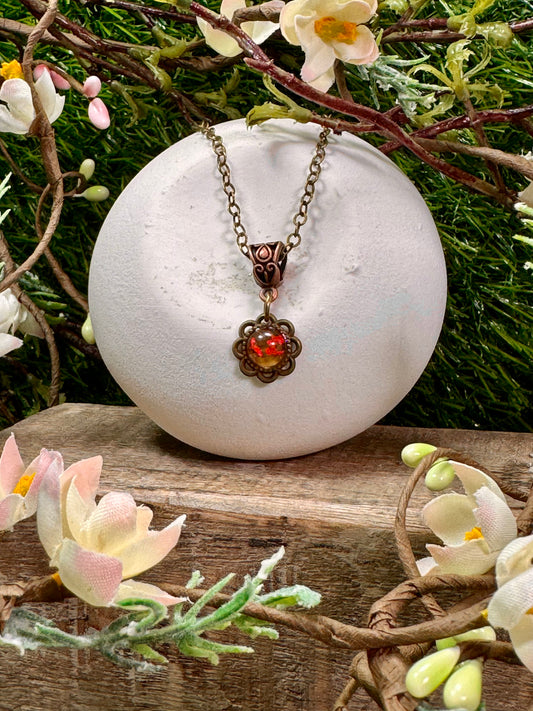 Tiny Antique Pendant with Red Flower Buds