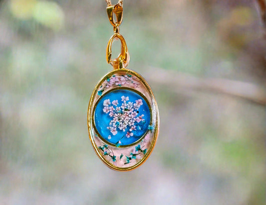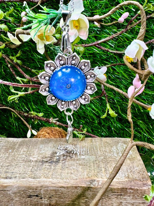 Blue "Forget Me Not" Pendant in Antigue Setting