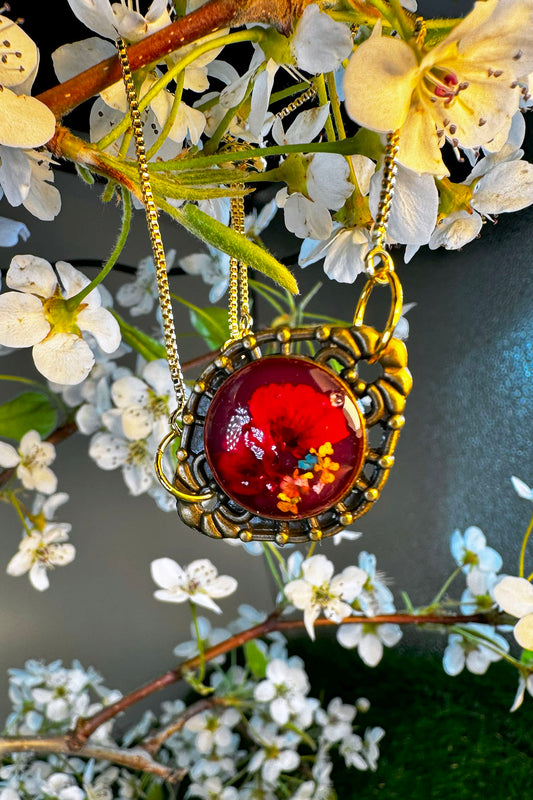 Dark Red Flower in Bronze Bracelet Setting