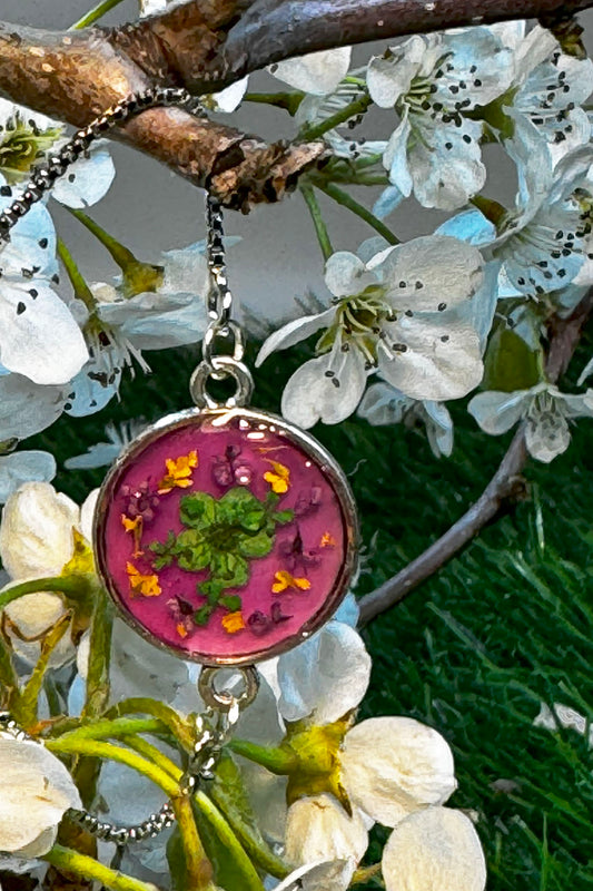 Pretty in pink and a green Forget Me Not center flower