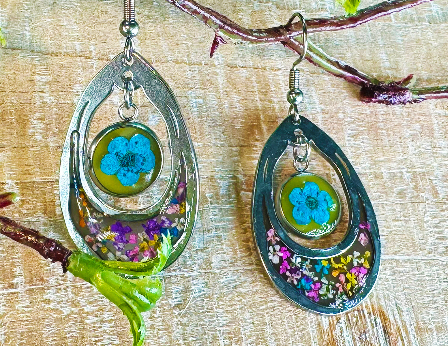 Blue "Forget Me Not" Dangles with additional drop of mixed tiny flowers