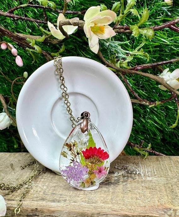 Expertly crafted with a clear design and adorned with beautiful garden flowers, this pendant is the perfect addition to any outfit. Add a touch of nature and elegance with this unique piece, perfect for any occasion. Made with high-quality materials, this pendant is sure to impress.