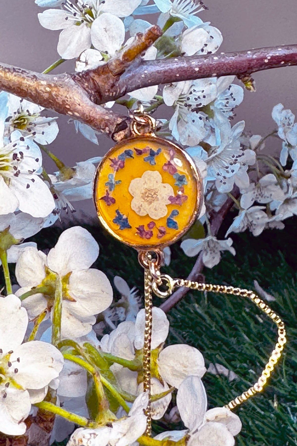 Elevate your spring style with our Peach Bracelet adorned with delicate white Forget Me Not Flowers. Crafted with care and designed to be eye-catching, this bracelet is both fun to wear and adds a touch of elegance to any outfit. Don't miss out on this must-have accessory for the season.