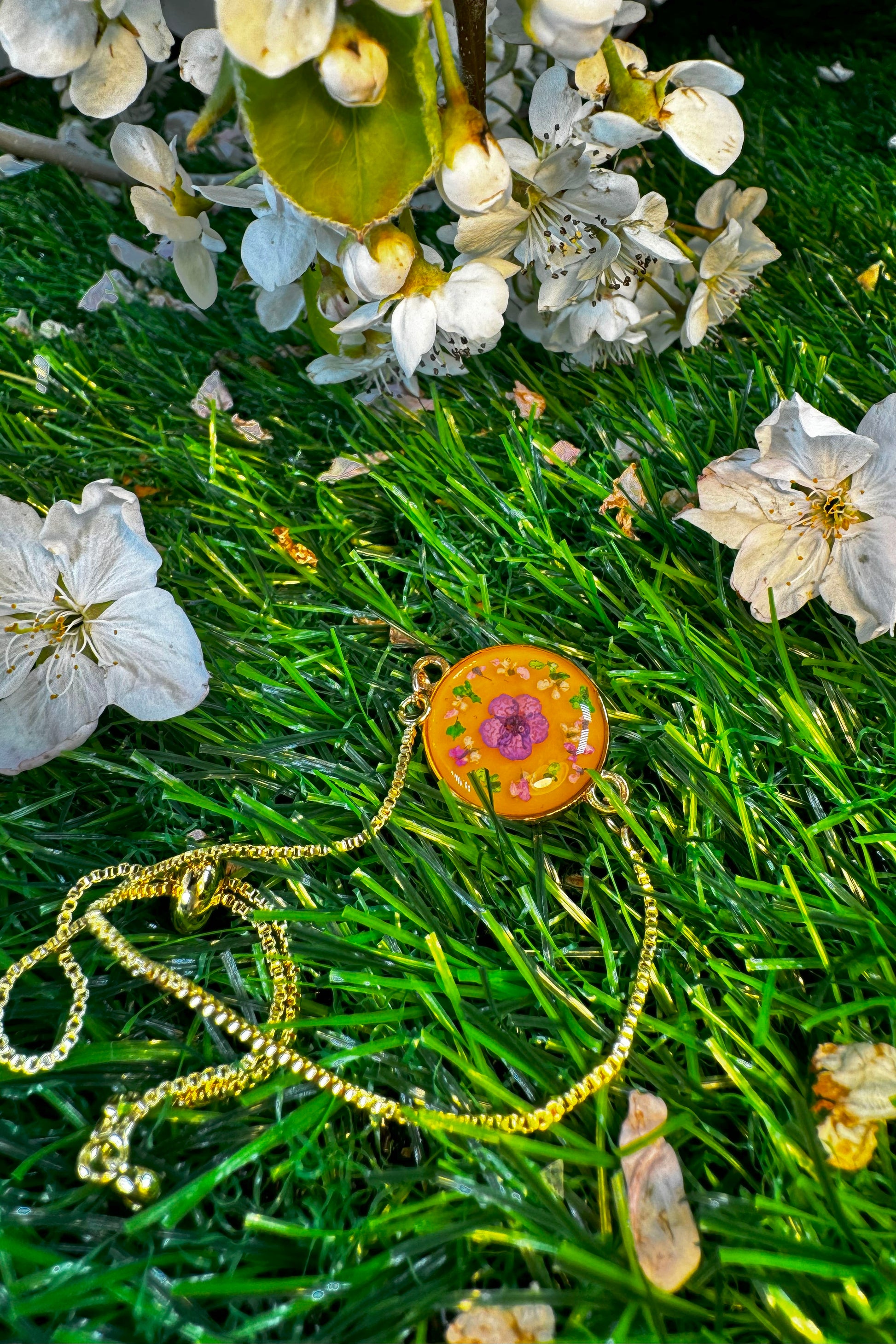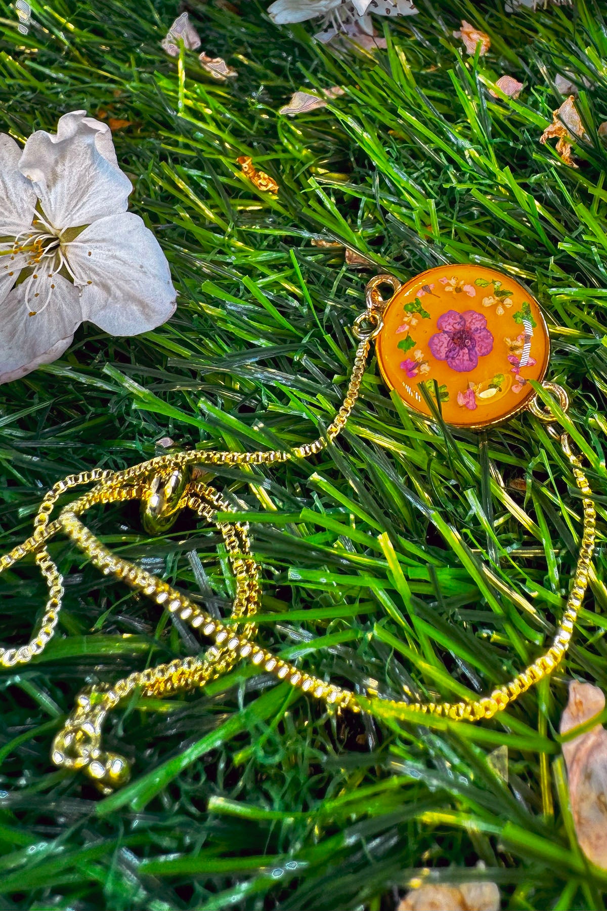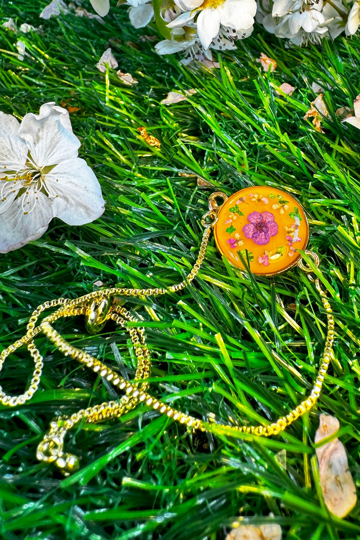 Add a touch of spring to your look with our lovely peach and pink bracelets. The gold pull design makes it easy to wear and adds a touch of elegance. Embrace the season with these beautiful flower bracelets.